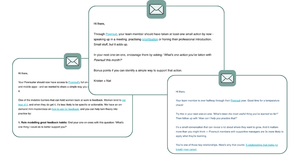People leaders play a vital role in helping members protect time for professional development. So, we email short monthly updates, making it easy for them to stay across what we’re doing and support their people. We know managers have a lot on their plates, so these updates come complete with simple actions and suggested questions to ask during one-on-ones.