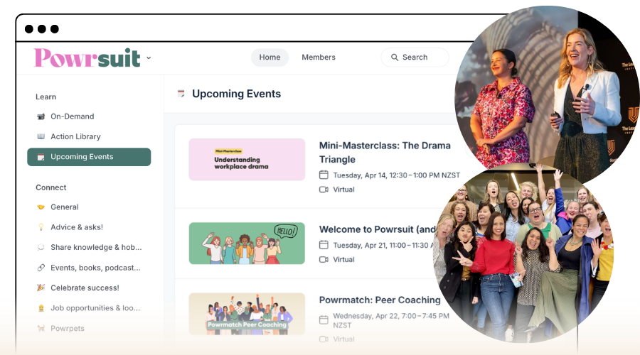 Delivered online or in-person, Powrsuit’s interactive mini-masterclasses are a perfect way to enhance team days or tackle challenges together. All genders welcome!